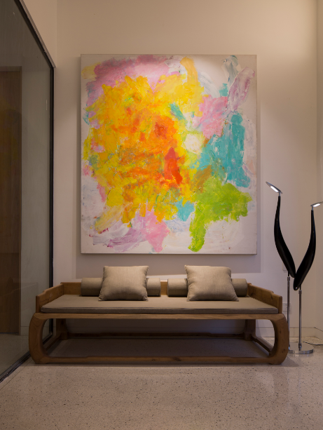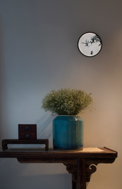 北京的照明場景應用中,將新亞洲風尚燈品運用在工作室里。在工作區(qū)域的辦公桌上,具有照明功能的臺燈“扁舟”,曲線自然的扁舟造型,配合柔和寧靜的光線,讓人在工作中靜心暢游。順著走廊盡頭望去,燈品“靜廂”裝點其中,仿木造型框架,簡樸自然,方正大氣又有幽遠的中式風格。高高懸掛照射出純凈的光效,給人一種不躁不爭,安然寧靜的心境!墻面用“竹影”壁燈裝飾,取材于竹影映在窗上的傳統(tǒng)文人景象,頗有“素壁斜輝,竹影橫窗掃”的詩意。側面發(fā)出的光線與古典的案桌、瓷瓶干花光影交錯,一桌一花一壁燈,沉思靜悟,安頓心靈之處已然形成。休息區(qū)則使用落地鶴影燈,模擬白鶴,曼妙仙姿,傲然挺立,暗藏發(fā)光模組,在滿足裝飾照明的同時,也為空間環(huán)境增添風雅情趣。外加舒適的沙發(fā)、色彩豐富的裝飾畫,給休息的人營造一種遠離喧囂的舒適感。
