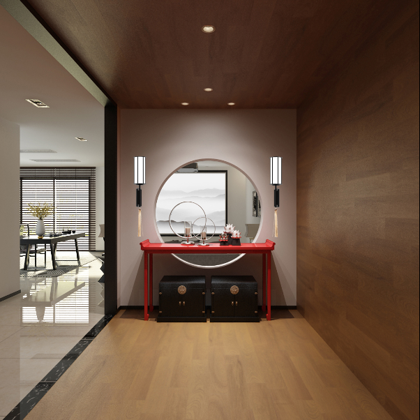 在蘇州的照明場景應用中,將新亞洲風尚系列燈品運用在家居環(huán)境中。推門入戶玄關處,一對清竹燈赫然入眼,竹節(jié)造型的燈體,雅致有型。下綴長條流蘇,隨風輕擺,動靜結合。圓形框景打造空間感,中國紅的條案古風十足,濃濃的書香氣息撲面而來。進入客廳,蜻蜓燈的點綴,輕盈動感,錯落有致。中國紅的罐子以及中式的隔斷,使客餐廳隔而不斷,達到視覺通透明亮的效果。木飾面的電視背景墻,與極簡的現(xiàn)代中式沙發(fā)黑白灰的配色相互映襯,給人舒適又自然的享受。再往里走,客廳的黑白灰延伸到了餐廳,與餐廳黑白配色的極光燈保持一致,圓形桌寓意一家人團團圓圓,而周圍的山水畫、異石擺件,餐邊柜上的荷花,每一處細節(jié)都彰顯著濃厚的中式氣息。
